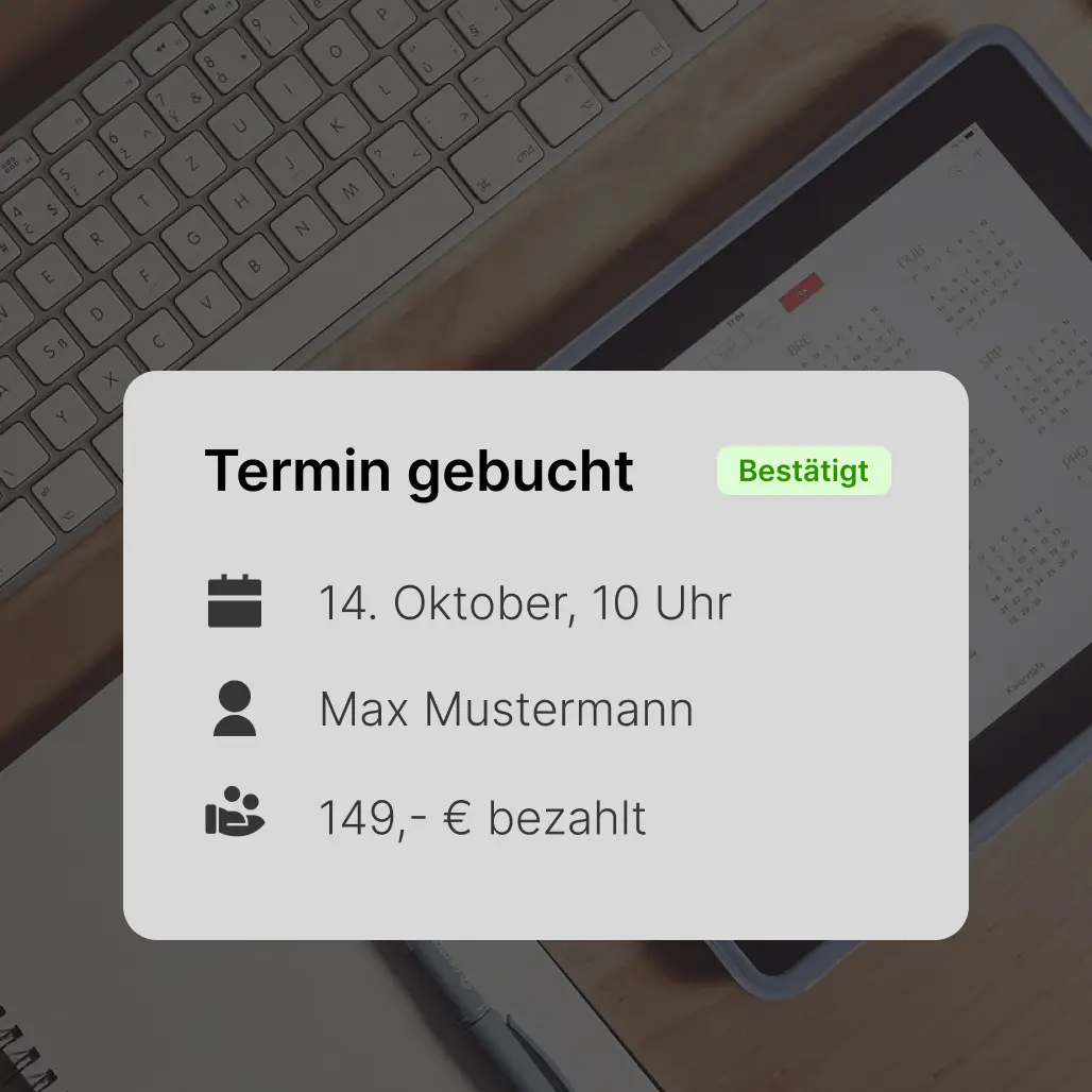 Ein reibungsloser, designter Buchungsprozess signalisiert deinem Kunden sofort: "Hier arbeite ich mit einem Profi."